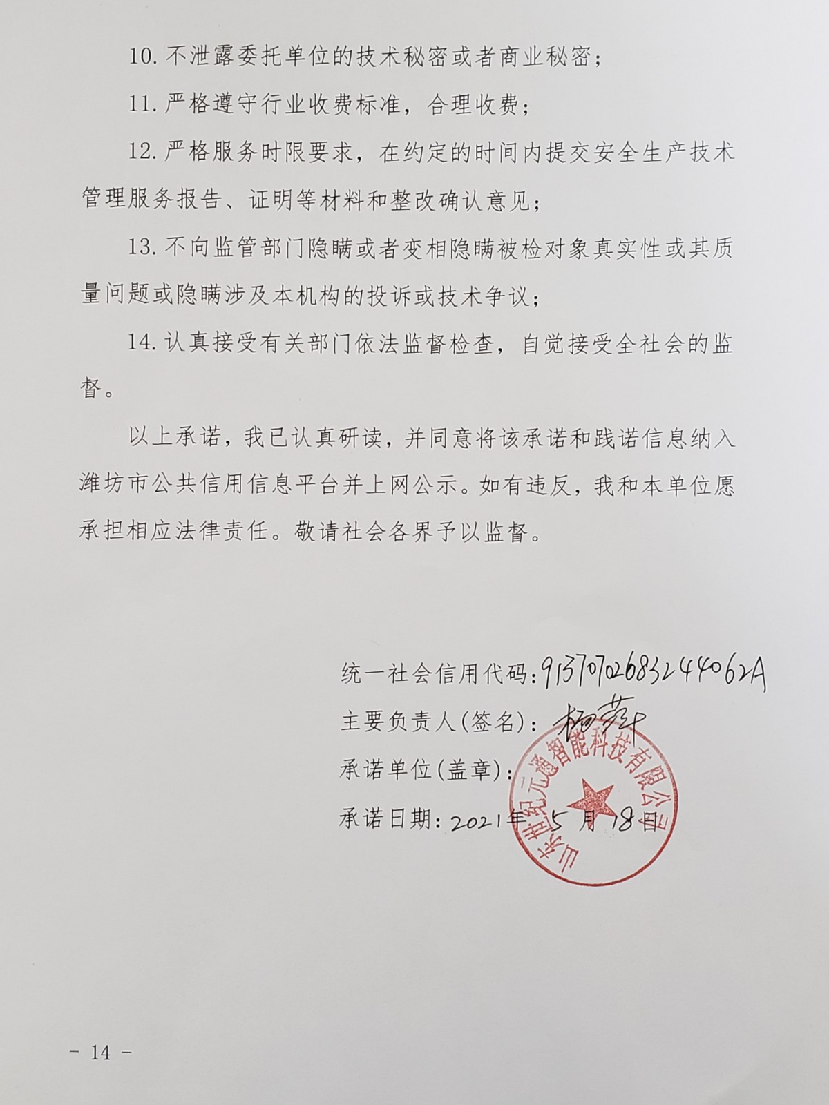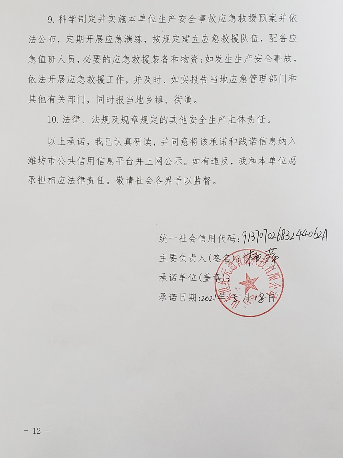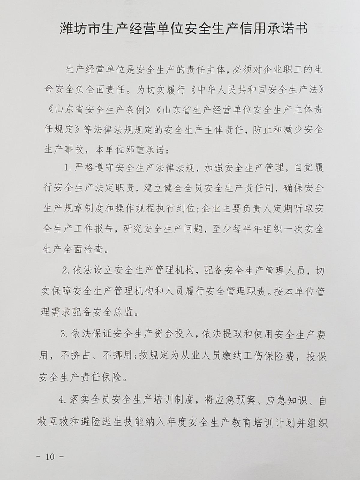 公司關(guān)于《濰坊市生產(chǎn)經(jīng)營單位安全生產(chǎn)信用承諾制度》的公示